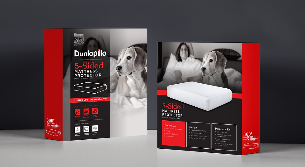 PureCare's silver coated technical textile mattress protectors required packaging that visually showed the benefits of each product. The challenge was also how to fit the many different brand logos and names of individual products into a cohesive design grouping.